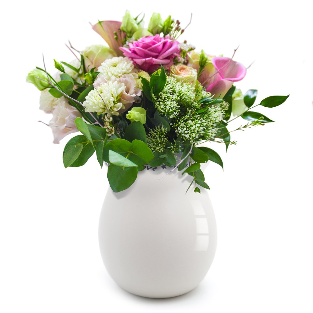 A florist choice mix in pinks, creams and whites. This bouquet is delivered in a vase to make it easy to keep. A gorgeous floral gift perfect for any occasion.